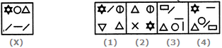 Find out which of the figures (1), (2), (3) and (4) can be formed from the pieces given in figure (X).