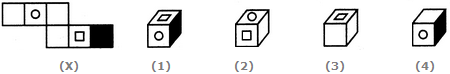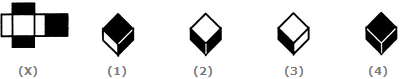 The fig. (X) is similar to the Form V. So, when the sheet in fig. (X) is folded to form a cube, then the face bearing a square lies opposite to the face bearing a circle. Therefore, the cubes shown in figures (1) and (2) which have the faces bearing the square and the circle adjacent to each other, cannot be formed. Hence, only the cubes in figures (3) and (4) can be formed.