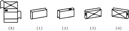 The sheet of paper shown in the figure (X) given on the left hand side, in each problem, is folded to form a box. Choose from amongst the alternatives (1), (2), (3) and (4), the boxes that are similar to the box that will be formed.